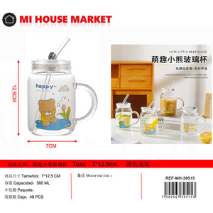 Bicchiere in Vetro a Forma di Orso 20oz con Cannuccia, Design Carino con Cappello, per Tè al Latte, Succo, Regalo Festivo